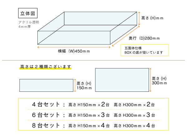 | 8台セット(W440mm×D280mm×H150・300mm×各4台ずつ) | ¥42,000 |
