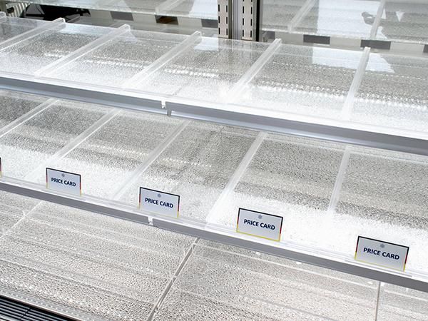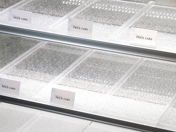ショーケースの光をよく反射させ、フレッシュ感や明るさをアップさせます。