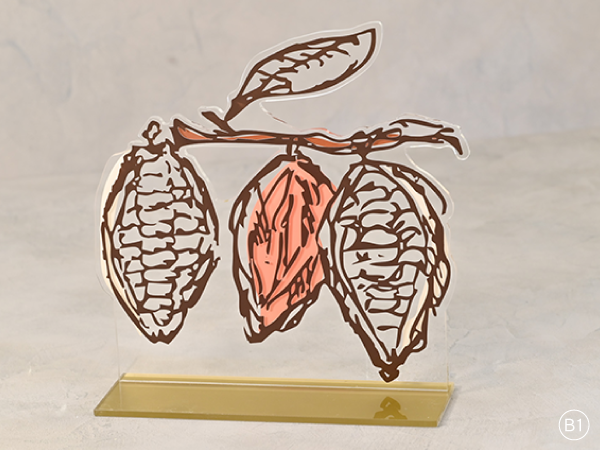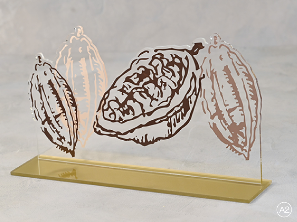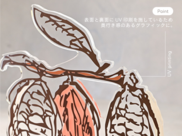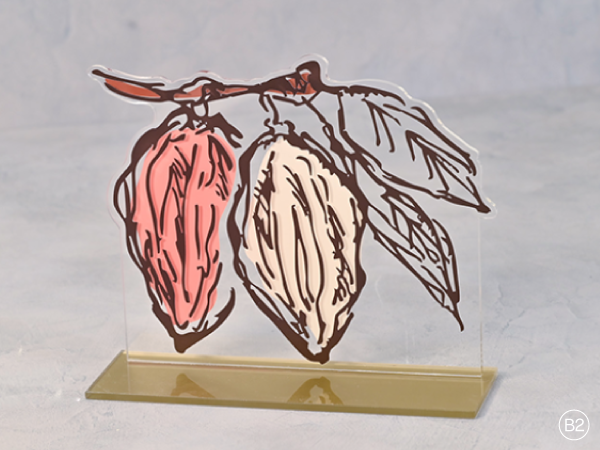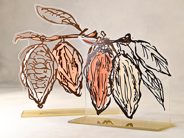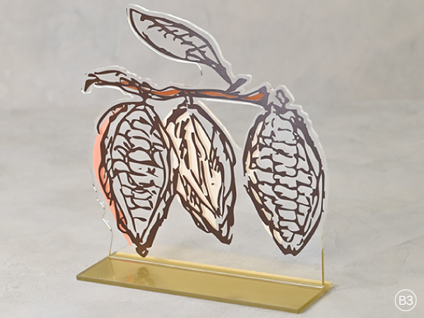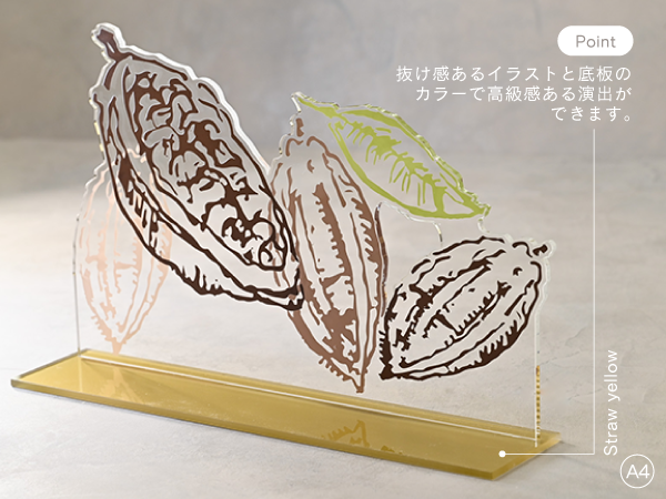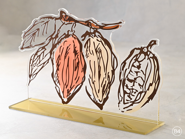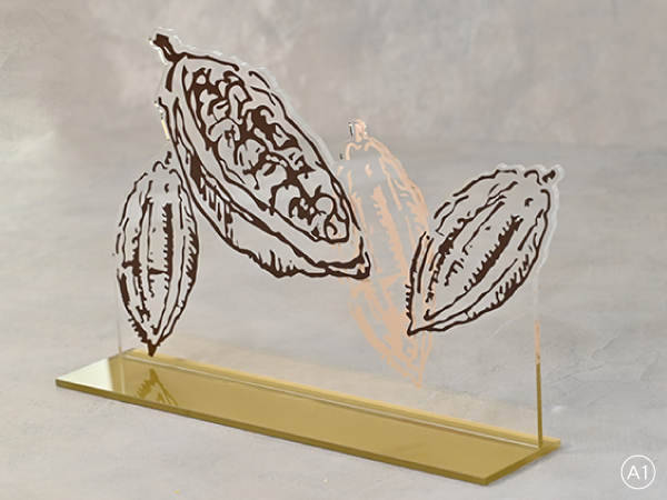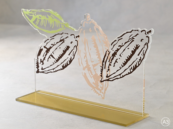 カカオのイラストが施されたオブジェで、その美しいデザインが空間に華やかさを演出してくれます。商品のそばに置くだけで、一気にその場がおしゃれな雰囲気に演出してくれます。ゴールドの底板が高級感を演出してくれ、より一層豪華な印象を与えてくれます。