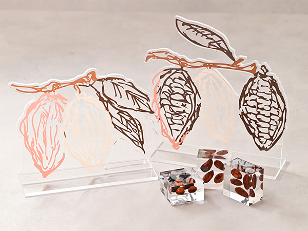 カカオのアクリルスタンド2個とカカオクリスタル3個がセットになった商品です。